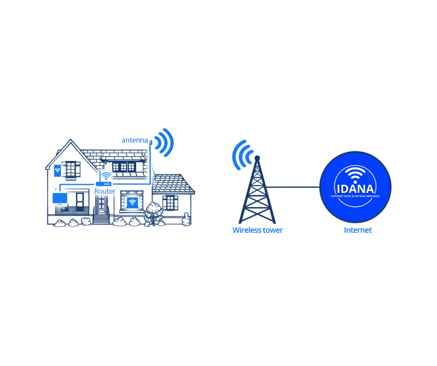 - Rete FWA: La nostra rete FWA utilizza ripetitori radio che operano indipendentemente dalle reti telefoniche tradizionali. Questo ci permette di portare il segnale internet a banda ultralarga anche nei piccoli comuni e nelle aree rurali, dove spesso le infrastrutture tradizionali non arrivano.